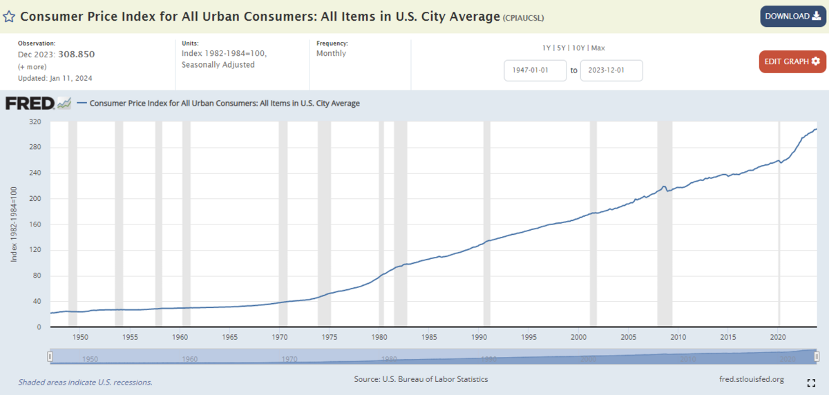 CPIAUCSL:Consumer Price Index for All Urban Consumers: All Items in U.S. City Average (Monthly)
